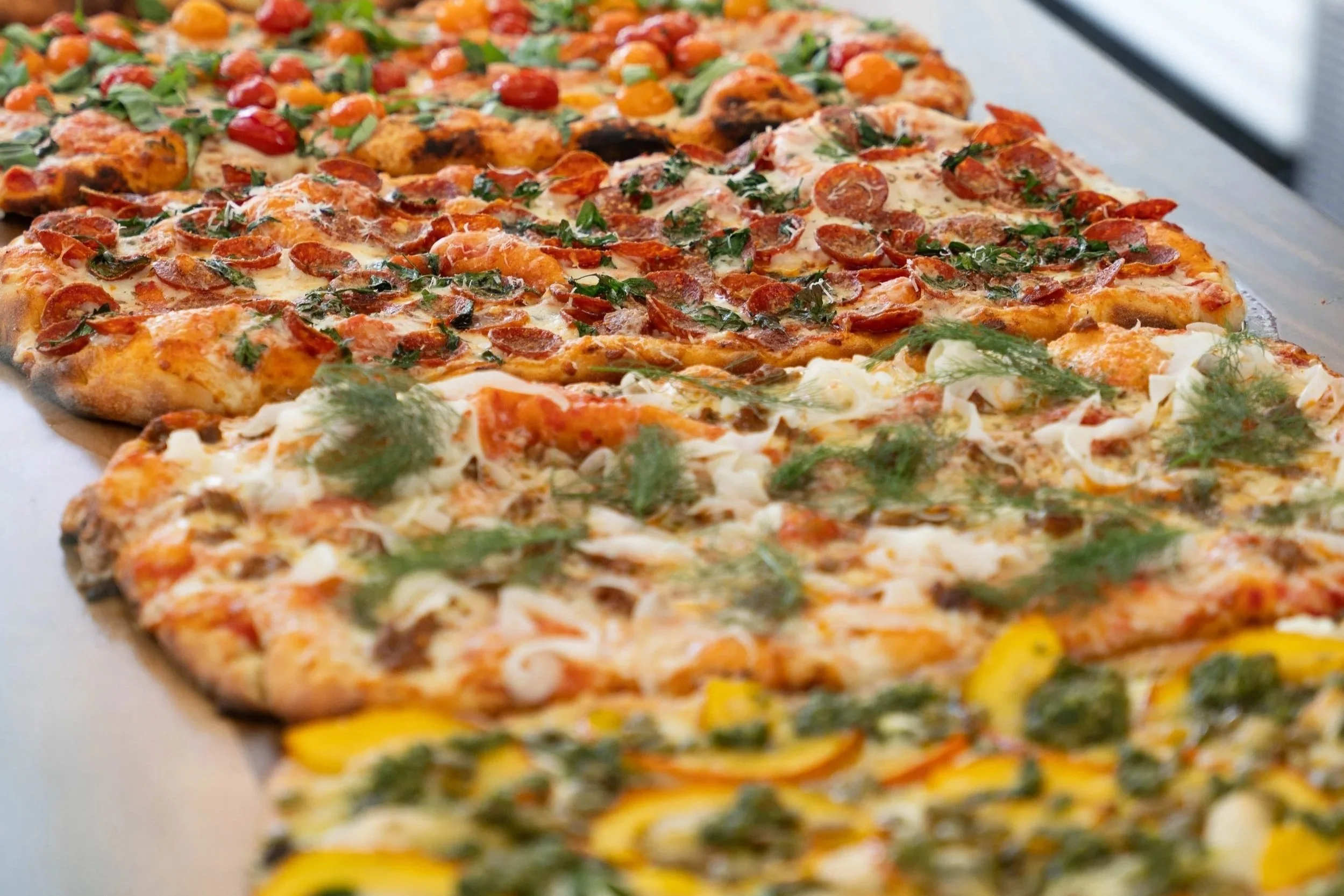 Our award-winning pizza has been created to celebrate the moment. We honor the tradition of East Coast and Detroit style pizzas and offer inspired salads. We use only the freshest of ingredients. Our dough is fermented for 72 hours, using Central Milling flour and "Old World" baking techniques, resulting in a light and crispy crust. We curate our selection of beer, wine and ciders to feature our local favorites.